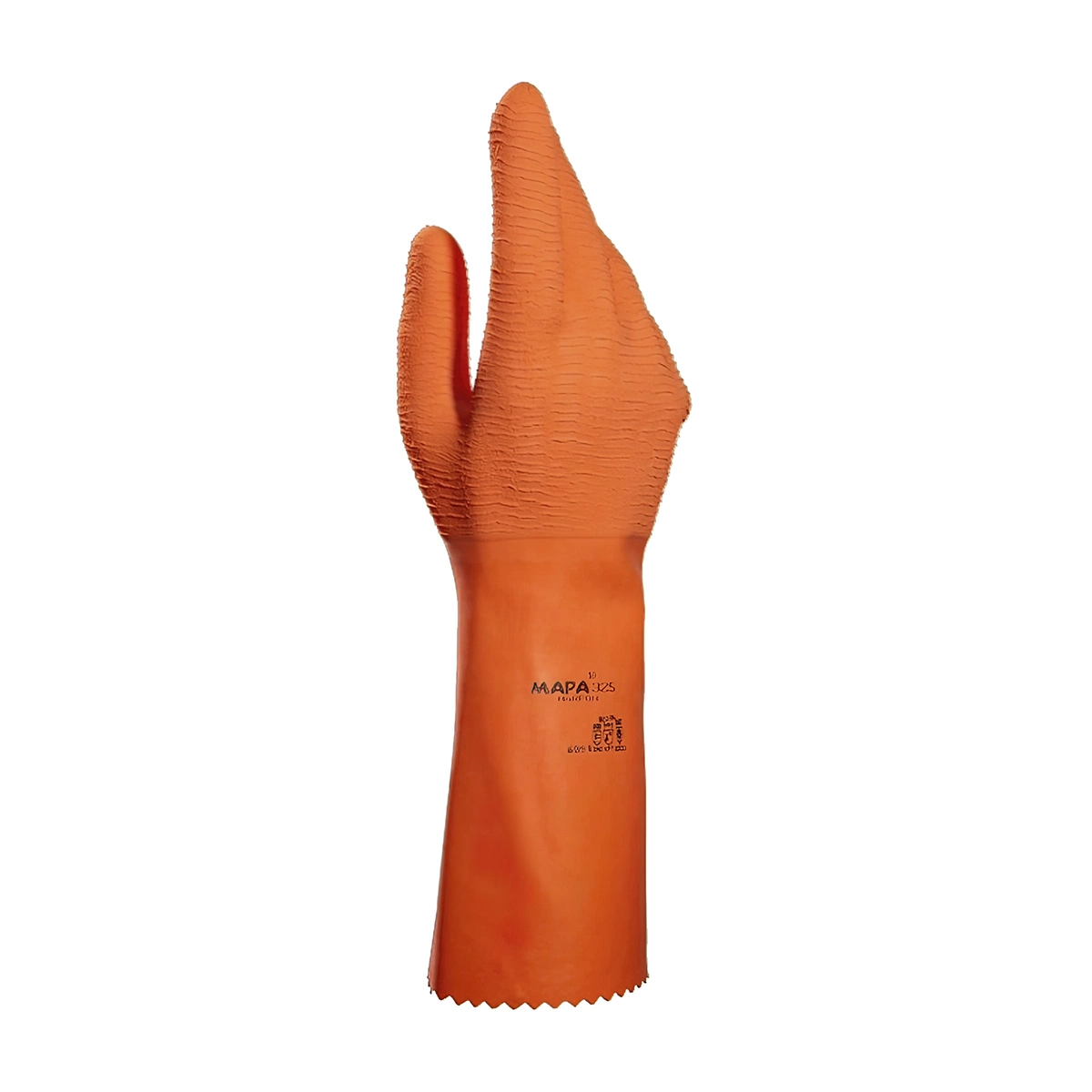 Guante de color tomate acabado interior soporte textil material de látex natural Longitud 32 cm tierne un buen aislamiento termico talla