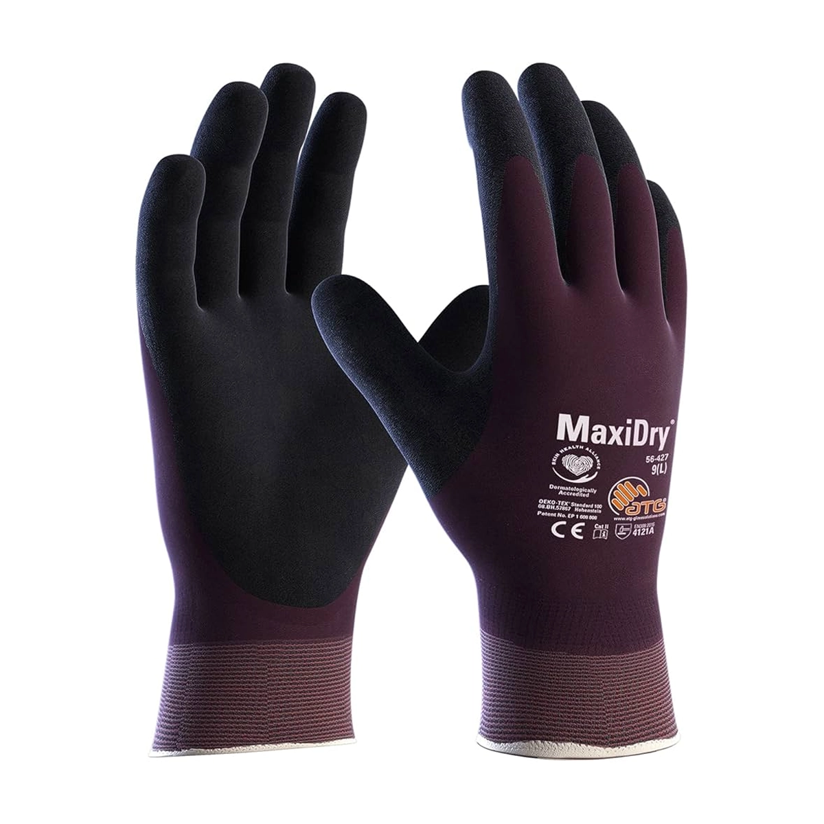 Guante de color violeta / negro revestimiento total y puños tejidos impemeable al aceite, extrafino flexible y comodo